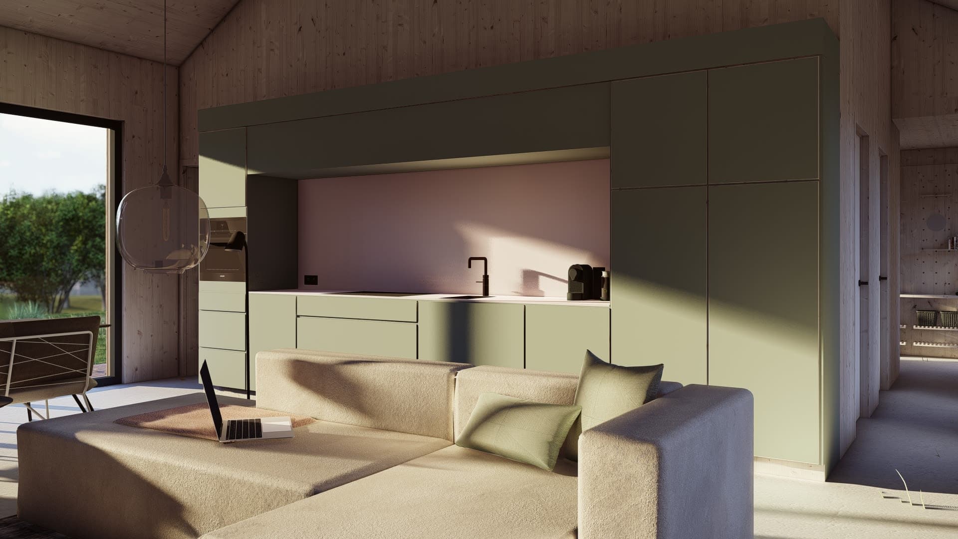Een open leefruimte met mezzanine vormt de kern van onze Suus met een mooi zicht door het dubbele schuifraam naar de tuin toe en voldoende ruimte om ieder zijn eigen plekje te bieden.